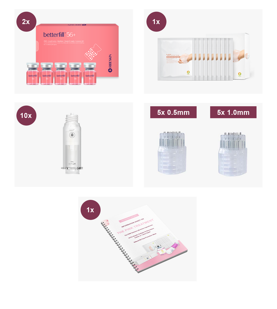 The Pink Treatment Mini Essentials Kit includes all the main components that you will need to start performing this treatment! The Mini Essentials Kit offers The Pink Solution with Turtlepin III Application at either a 0.5mm or 1.0mm stimulator depth, and The Natural RX Post Procedure Masks to soothe and hydrate the skin post treatment. This is the perfect option for clinics who want to try the Pink Treatment!