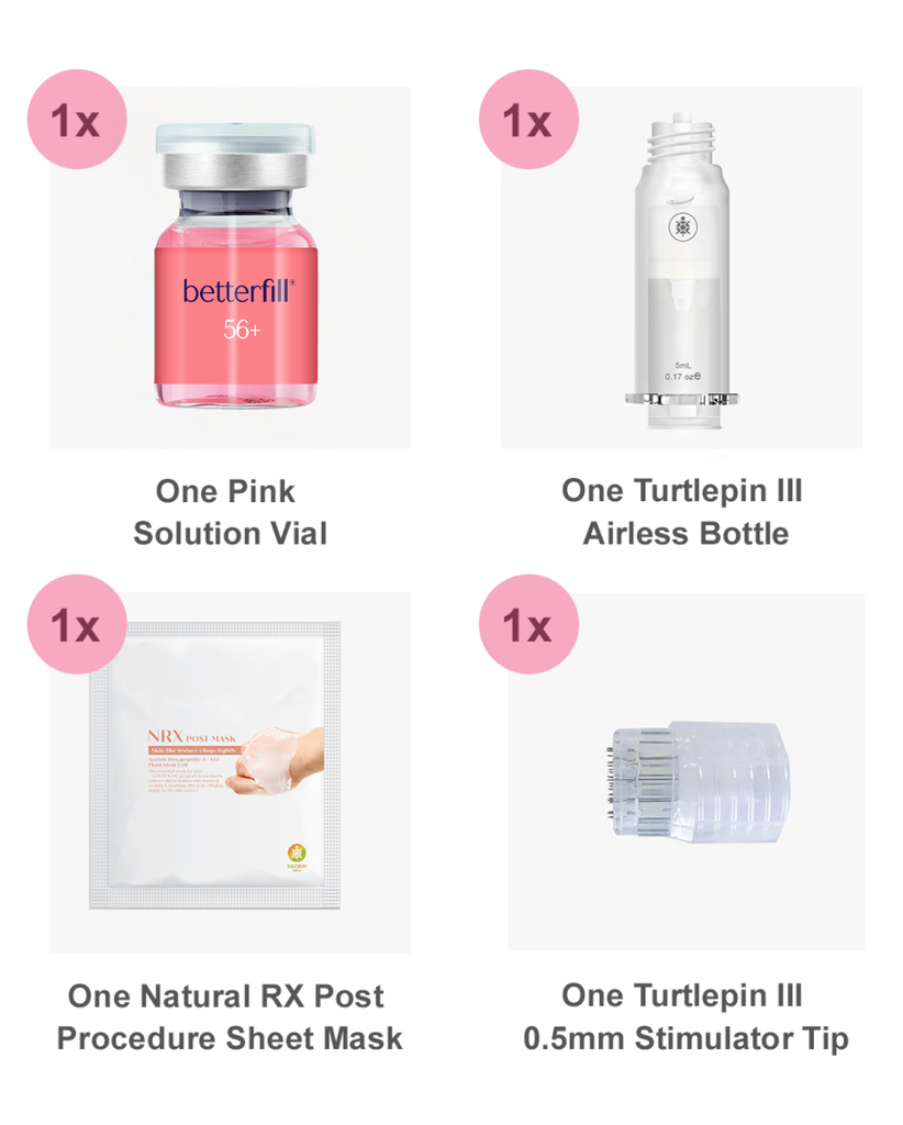 Receive a vial of Pink Solution, containing 56 skin loving active ingredients administered topically and finish off with the Natural RX Post Procedure Mask to soothe and hydrate the skin post treatment.